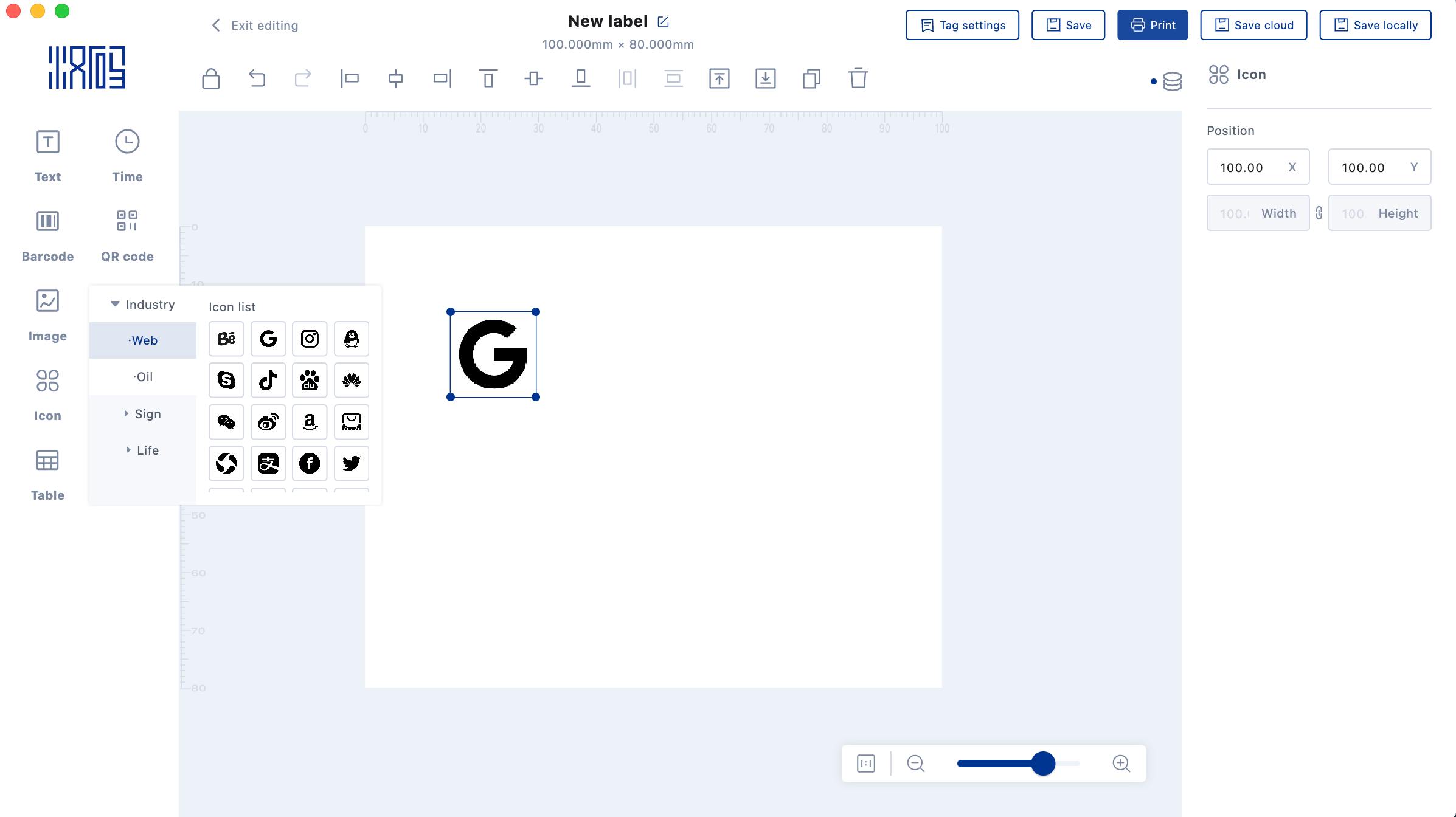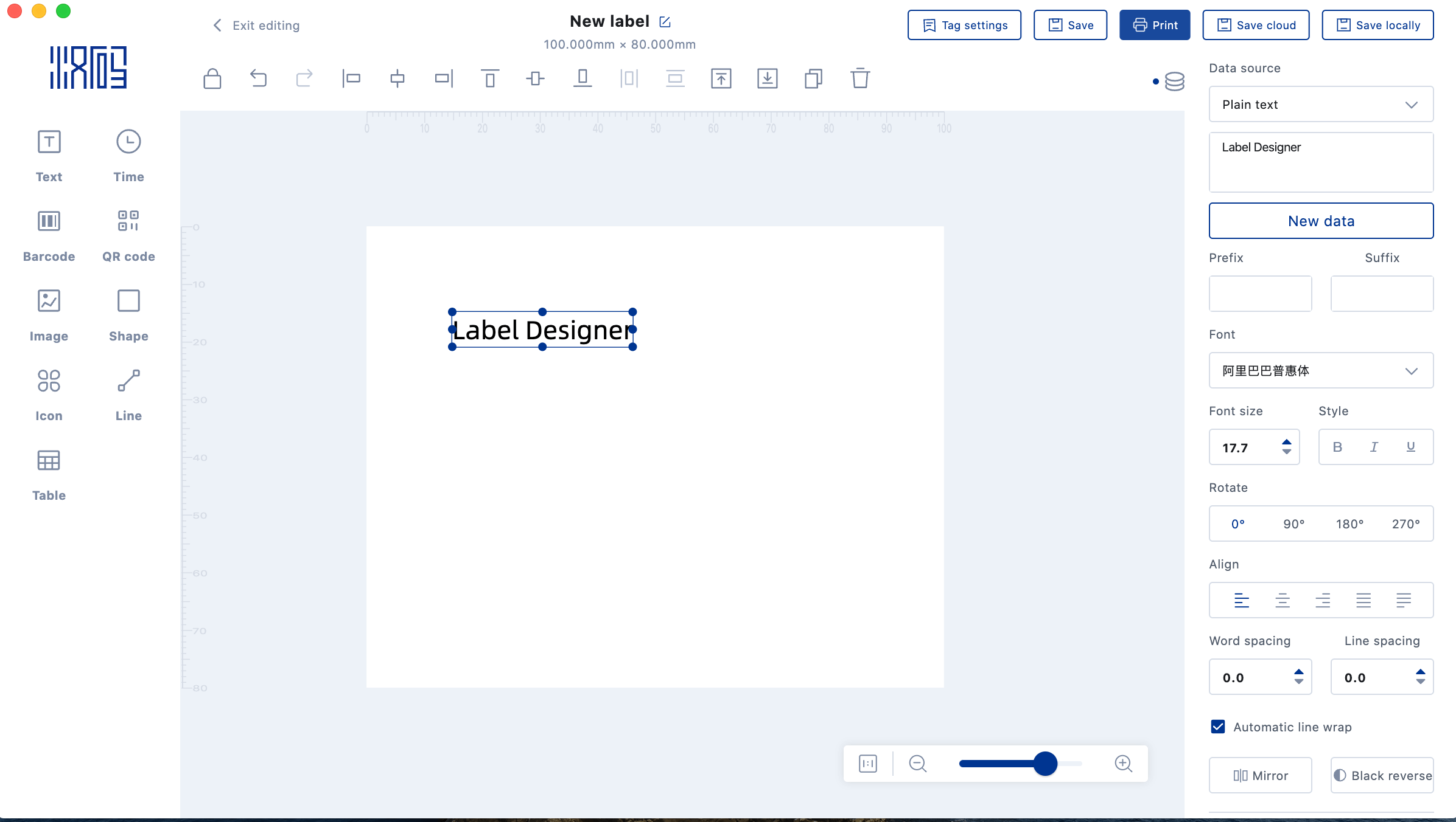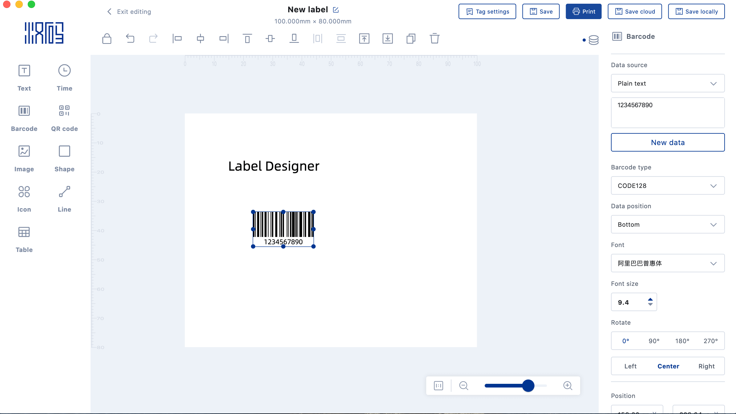 3.Barcode element:Barcode properties can be set on the right
