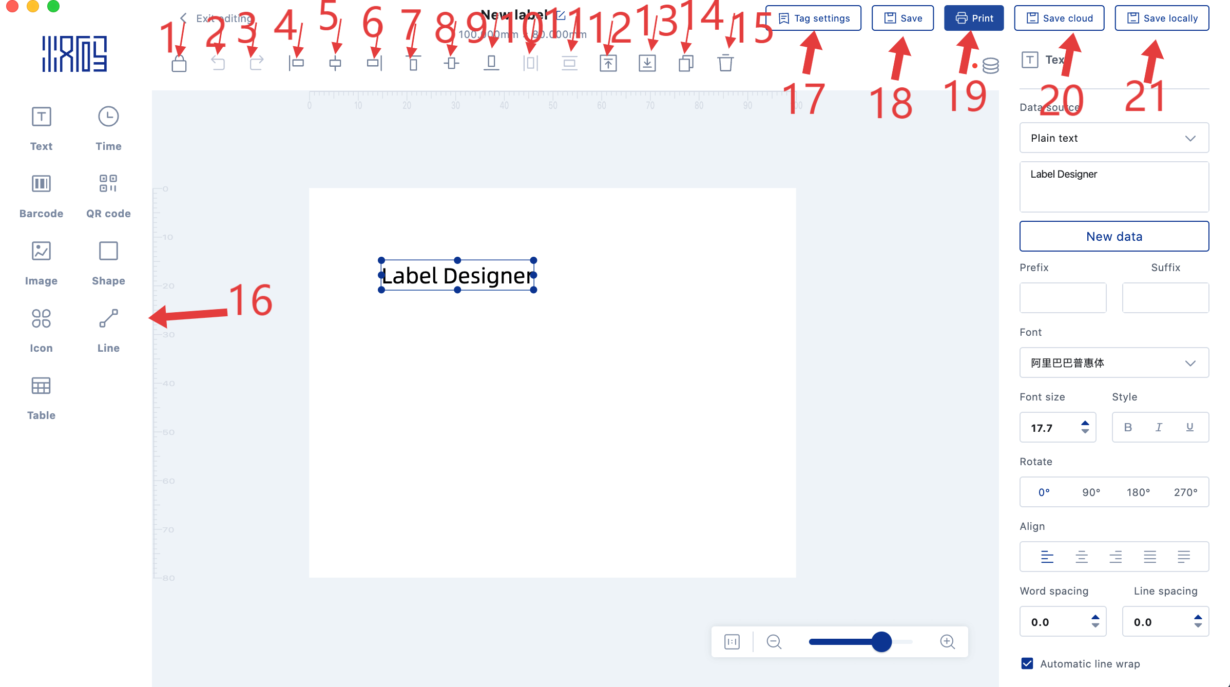 19)Print label