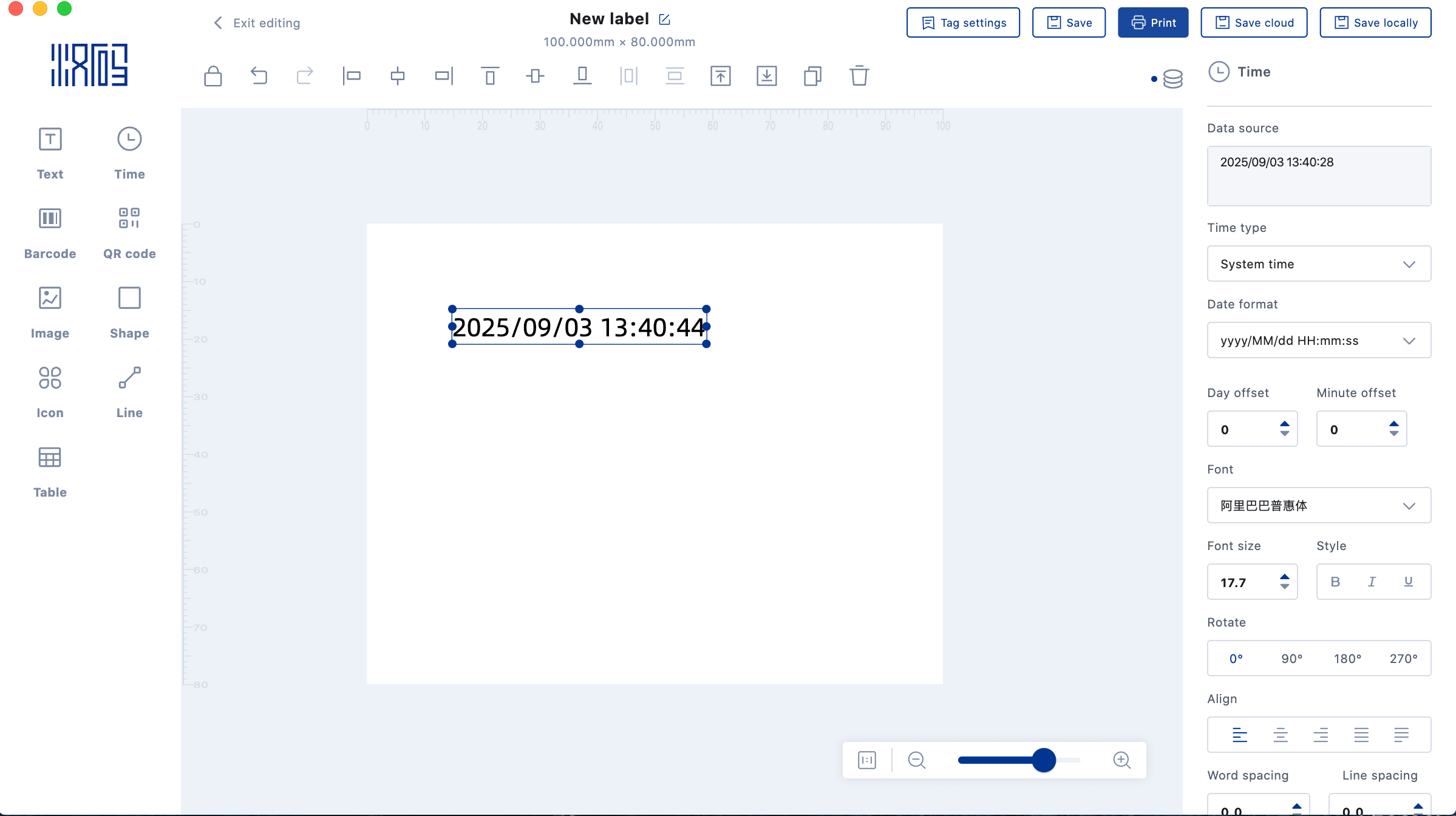 5.Time text element:Time text attributes can be set on the right,Support specified time